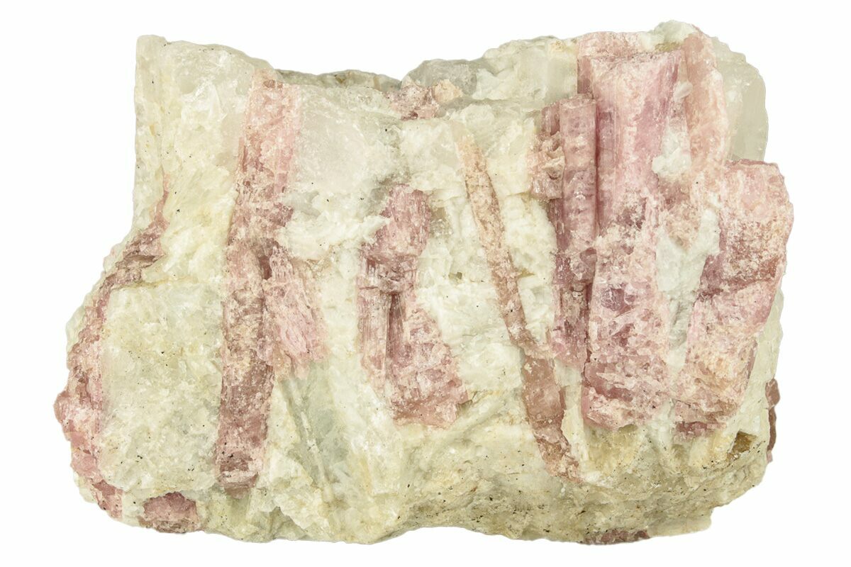 This is a colorful association of pink tourmaline (rubellite) crystals that formed within a mass of quartz, collected from Brazil. The pink tourmaline gains its vibrant color from manganese impurities.