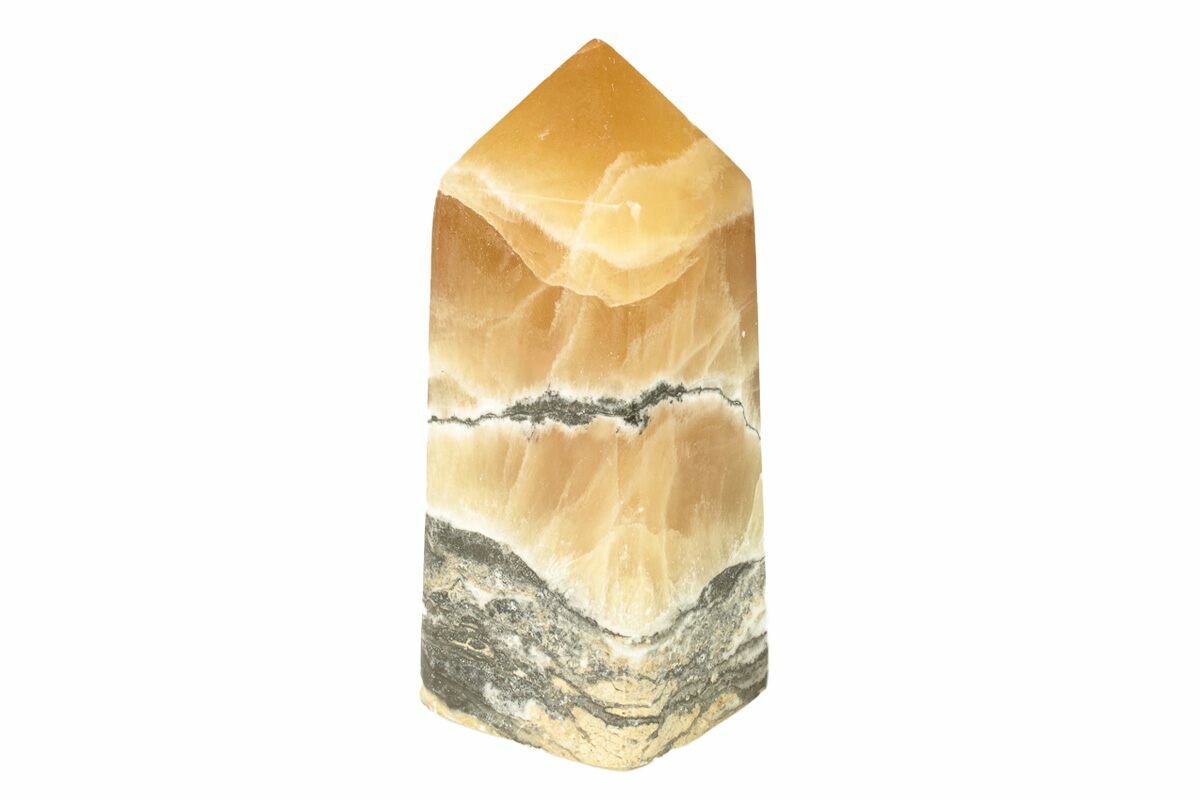3.4" Polished Banded Honey Calcite Obelisk - Pakistan