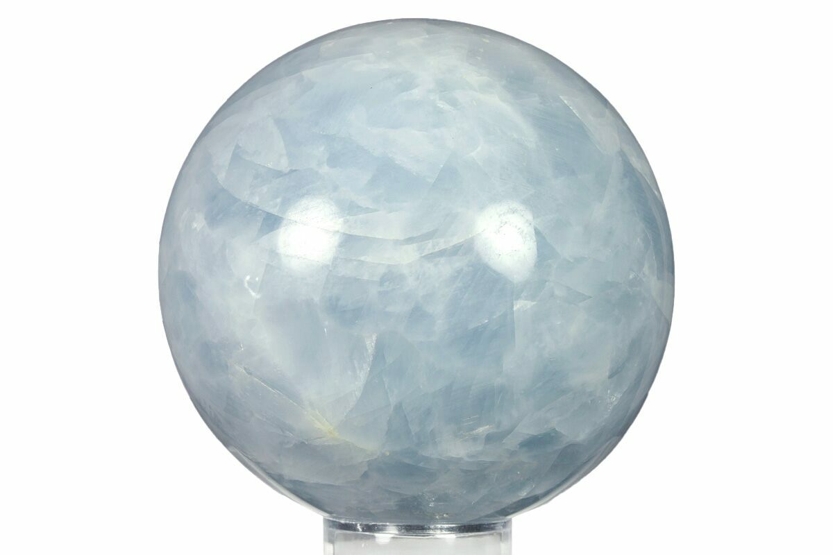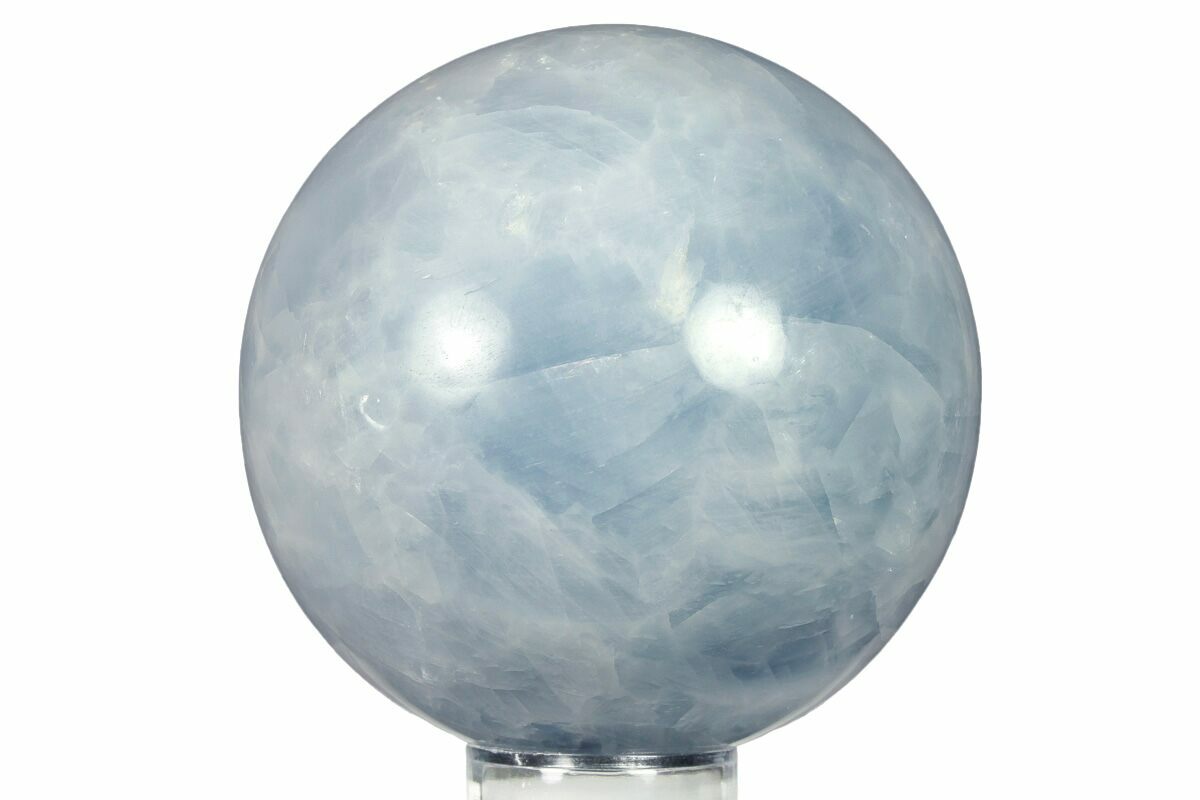This is a beautiful, 3.4" wide polished sphere crafted from blue calcite from Madagascar. It has been flawlessly polished to a glossy finish to highlight the mineral's attractive blue color.