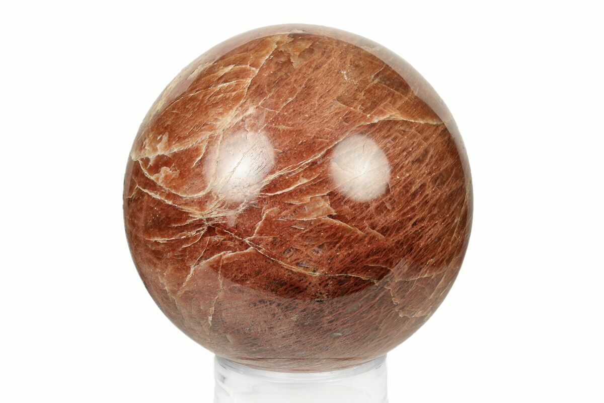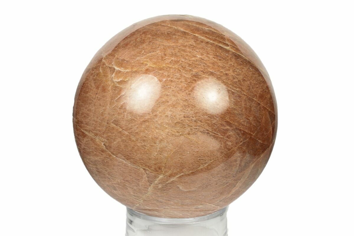 This is a polished sphere made from peach moonstone (potassium aluminum silicate feldspar) that has been shaped and polished into a sphere. An acrylic display stand will accompany the sphere.