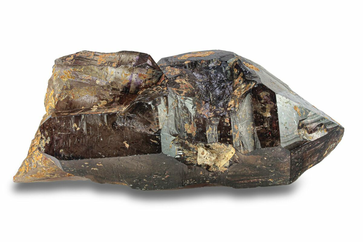 These distinctive crystals are often very dark in color and contain small, red, flake-like hematite inclusions peppered throughout. These crystals frequently form individual scepters and occasionally include enhydros--small bubbles of water--trapped within. You can look for an enhydro in your crystal by backlighting the specimen and rotating the crystal, looking for the movement of air bubbles in water within.