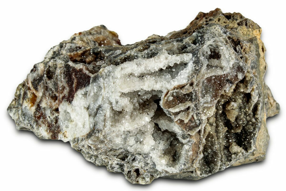 Quartz is the name given to silicon dioxide (SiO2) and is the second most abundant mineral in the Earth's crust. Quartz crystals generally grow in silica-rich environments--usually igneous rocks or hydrothermal environments like geothermal waters--at temperatures between 100°C and 450°C, and usually under very high pressure. In either case, crystals will precipitate as temperatures cool, just as ice gradually forms when water freezes. Quartz veins are formed when open fissures are filled with hot water during the closing stages of mountain formation: these veins can be hundreds of millions of years old.