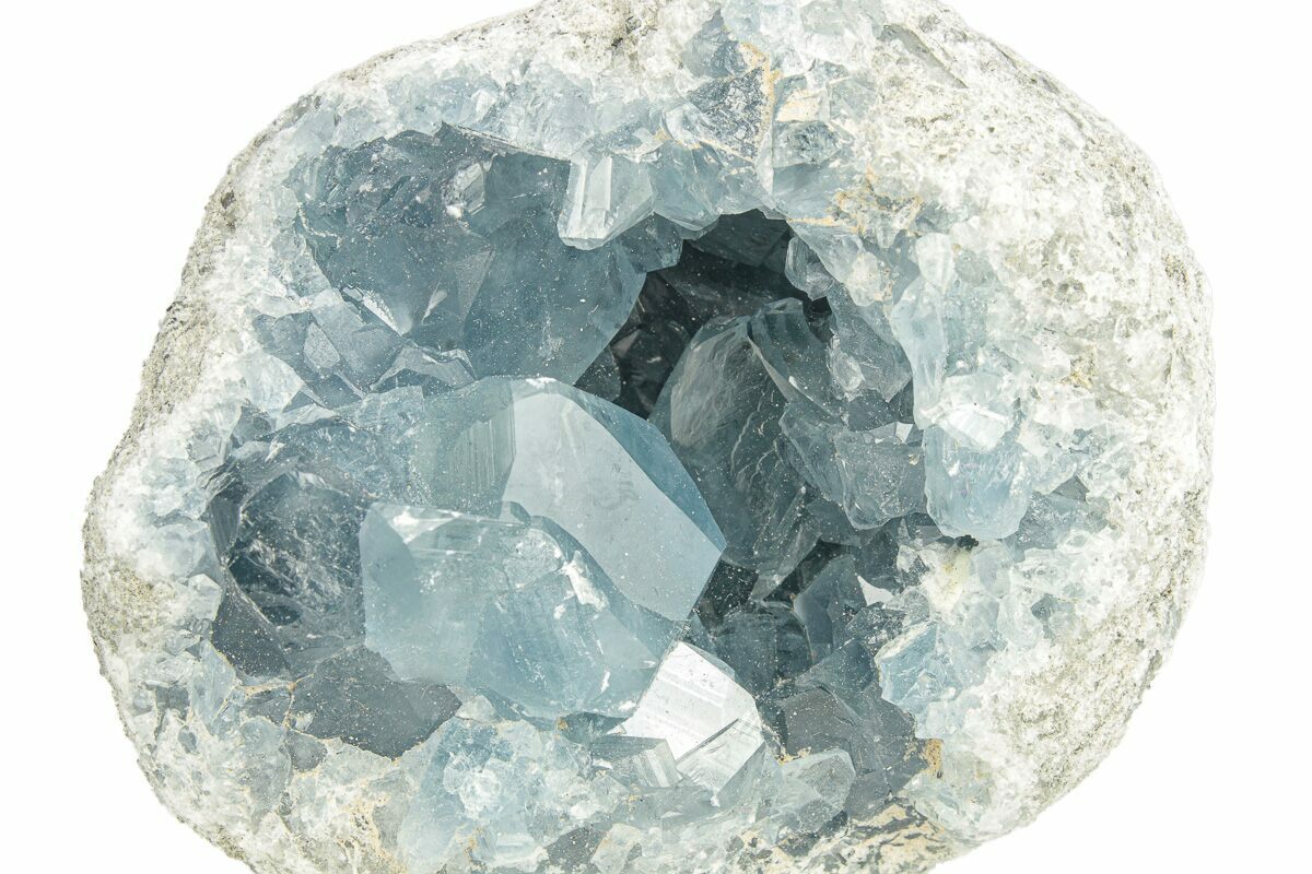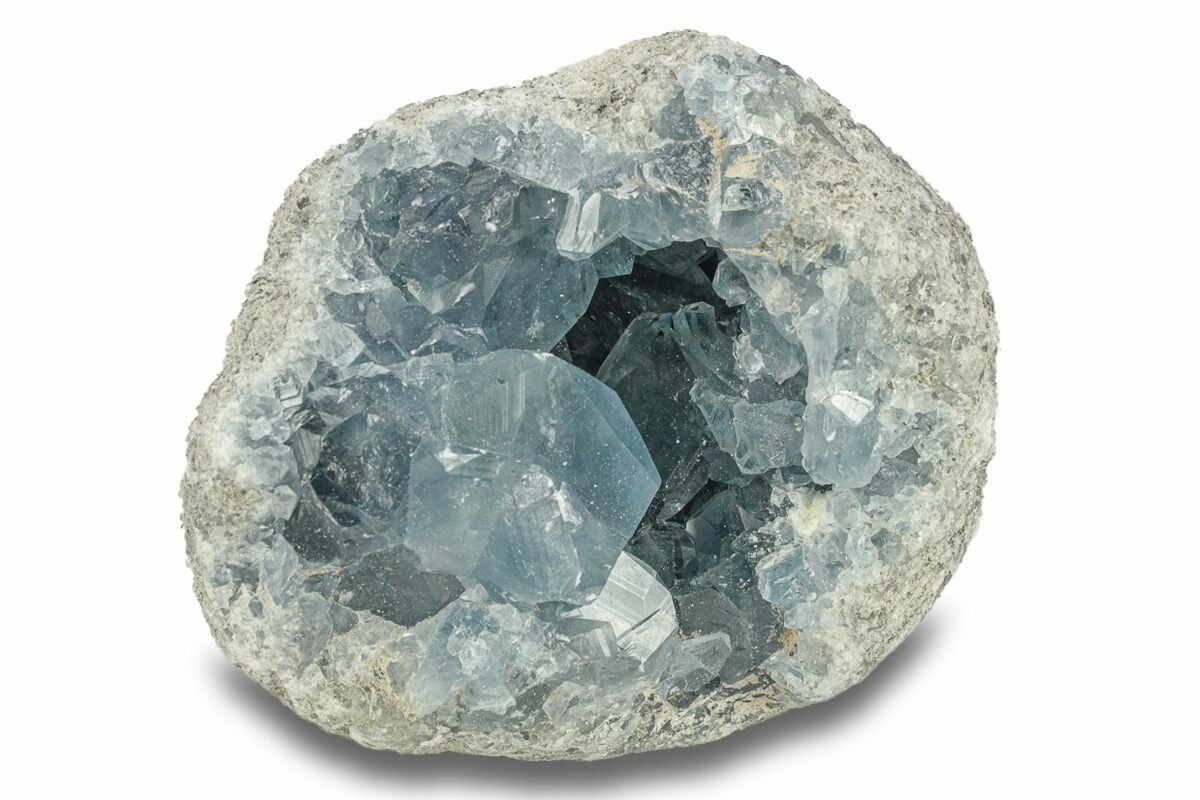 Celestite (or celestine) is a mineral consisting of strontium sulfate (SrSO4). It tends to form attractive, well-shaped crystals that are often found inside of geodes. One of the main sources of celestine is the deposits on the northwestern coast of Madagascar.