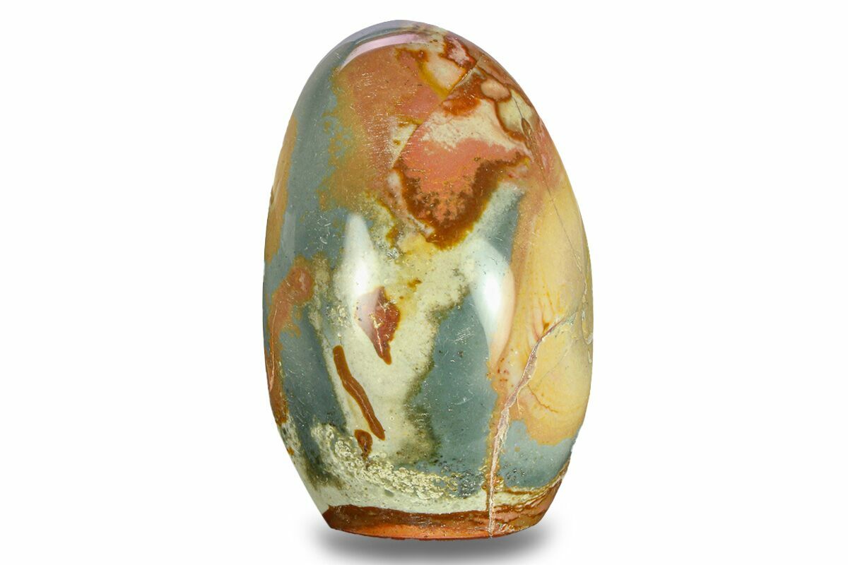 This is a hand polished piece of Polychrome (Picture) Jasper found in the deserts of Madagascar. The entire specimen is polished to a glossy finish and the base has been cut flat to allow it to stand up nicely on a flat surface.