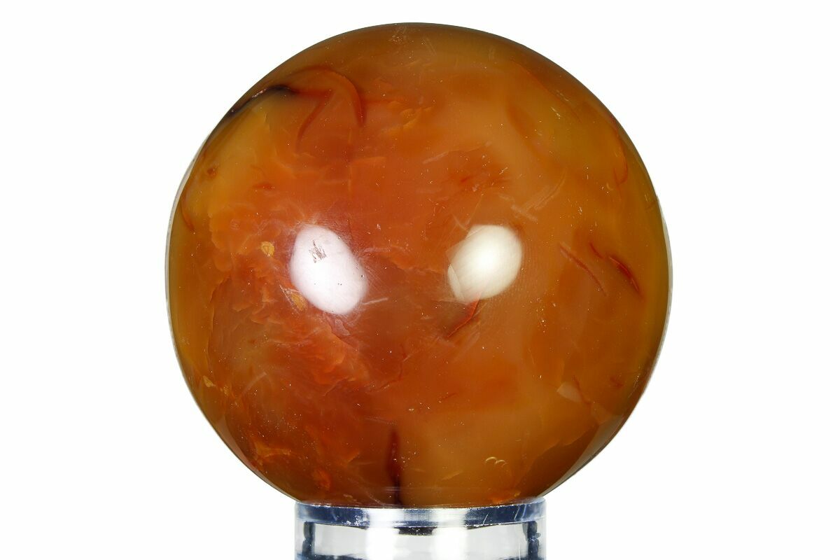 This is a richly-colored polished sphere of carnelian agate. The carnelian is mined in Madagascar and has wonderful deep red and orange colors.