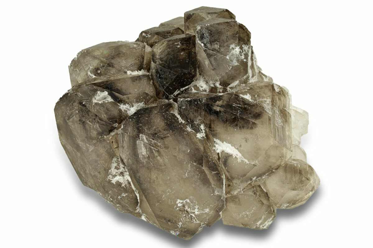 This is a natural smoky quartz crystal cluster from Minas Gerais, Brazil. This type of smoky quartz is commonly marketed as "smoky elestial quartz", or in some cases "jacaré" (Portuguese word for alligator) quartz for some specimens' resemblance to alligator skin. It features a gorgeous glassy luster and excellent transparency.