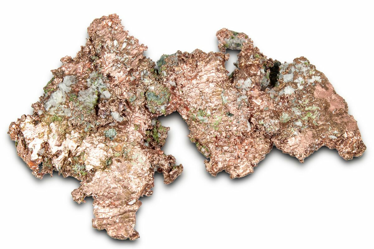 This is a natural formation of native copper mined on the Keweenaw Peninsula of Michigan. This native copper location is considered to be the most important as far as purity of the copper is concerned. Mining began here in 1845, producing copper until around 1982. Over this period of time, over 7 million tons of refined copper were recovered from the Michigan copper mines. By the early 1900's, these mines led the world in copper production, with "Lake Copper" becoming the comparative purity standard for other refined copper.