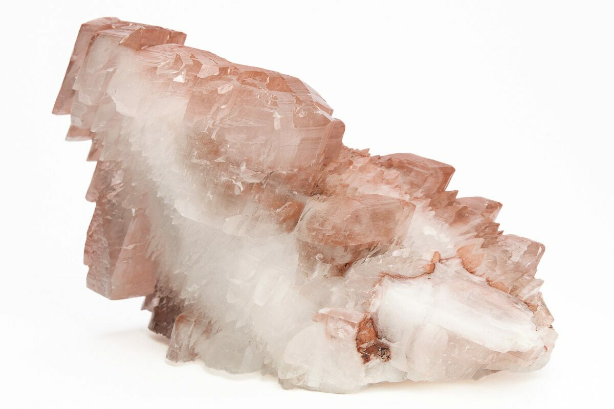 Calcite crystals are a form of calcium carbonate (CaCO₃) known for their diverse shapes, transparency, and vibrant range of colors. They typically form in rhombohedral, scalenohedral, or prismatic shapes, often with well-defined, sharp edges and glossy surfaces. Calcite crystals are often translucent or transparent, sometimes displaying a double refraction effect where objects viewed through the crystal appear doubled. They can appear in various colors—white, clear, yellow, pink, blue, green, and orange—depending on impurities or trace minerals.