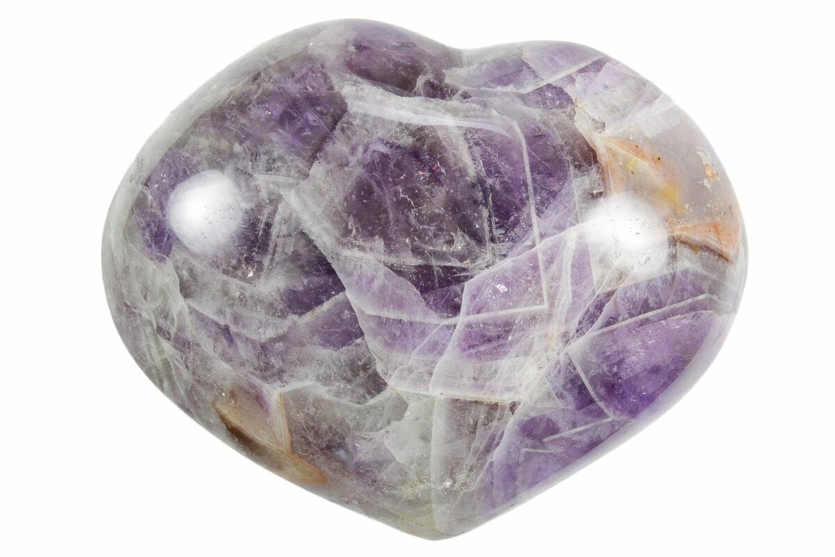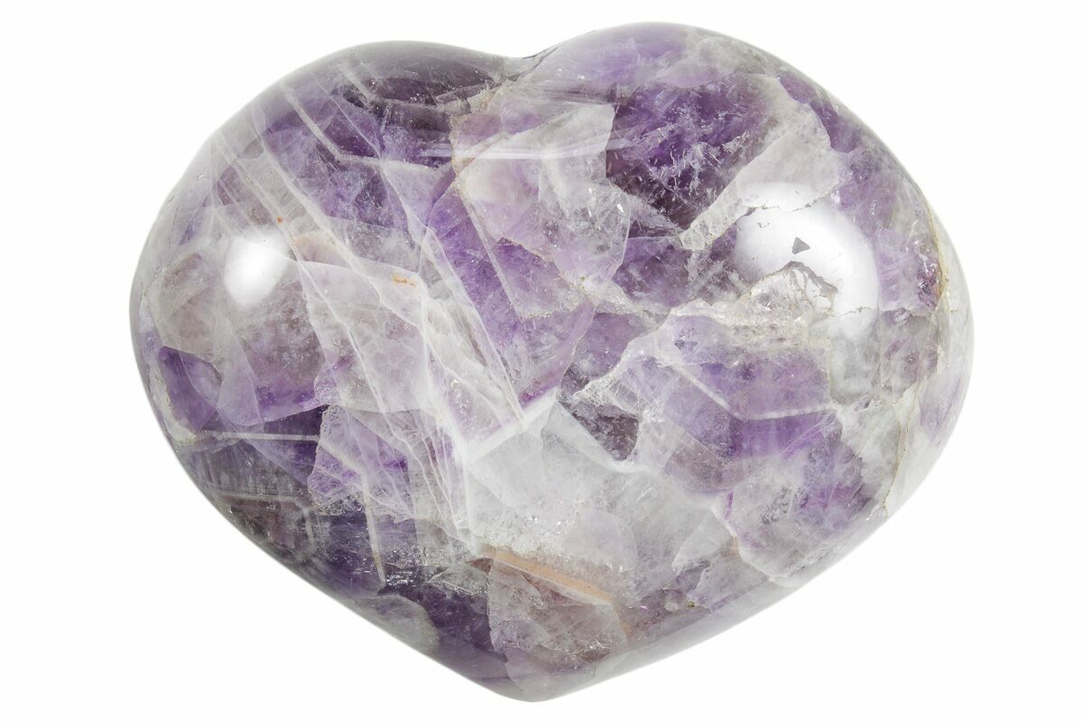 This is a beautiful 3.5" heart made from a massive amethyst formation, referred to as chevron amethyst. This specimen was collected, shaped, and polished in Madagascar.