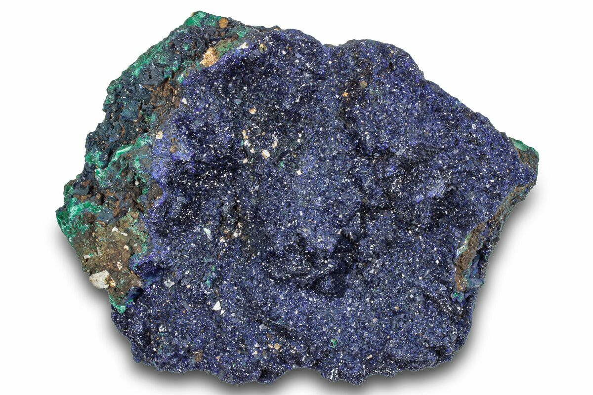 3.5" Sparkling Azurite Crystals on Fibrous Malachite - China