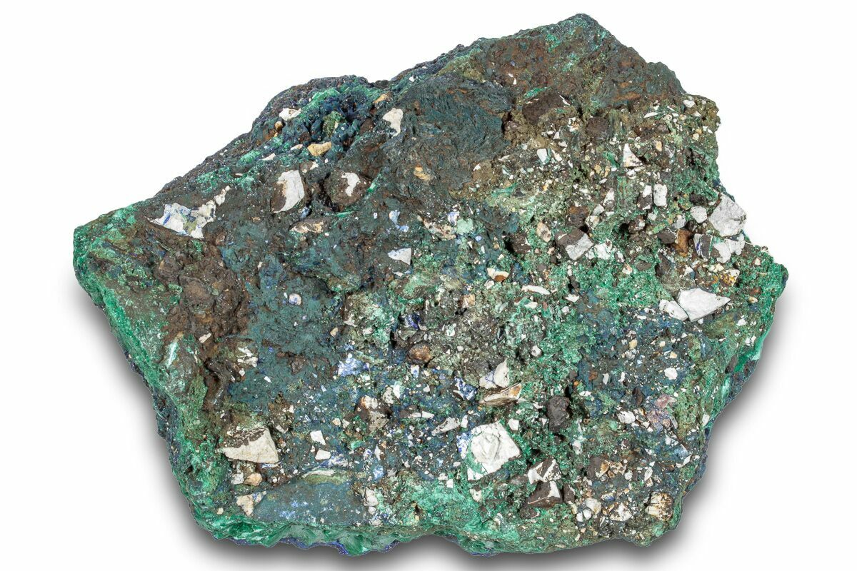 Azurite and malachite often form in union with each other, since their chemical makeup is very similar. In fact, the presence of more or less water in the location of formation is enough to determine whether an abundance of malachite over azurite, or vice-versa, will accumulate.