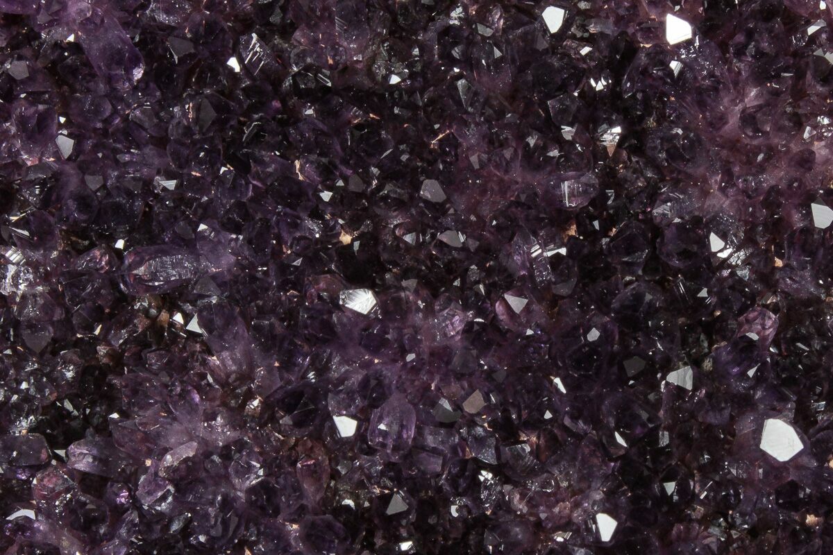 This is a beautiful purple cluster of amethyst crystals collected from Turkey. It contains many dark grape juice colored crystals with remarkable luster.