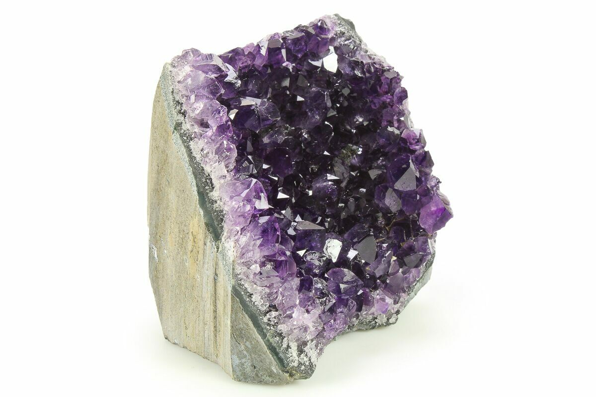 This is a 3.55" grape-jelly purple amethyst geode section from Artigas, Uruguay. The base of the cluster has been cut flat so that it stands up nicely on a flat surface.