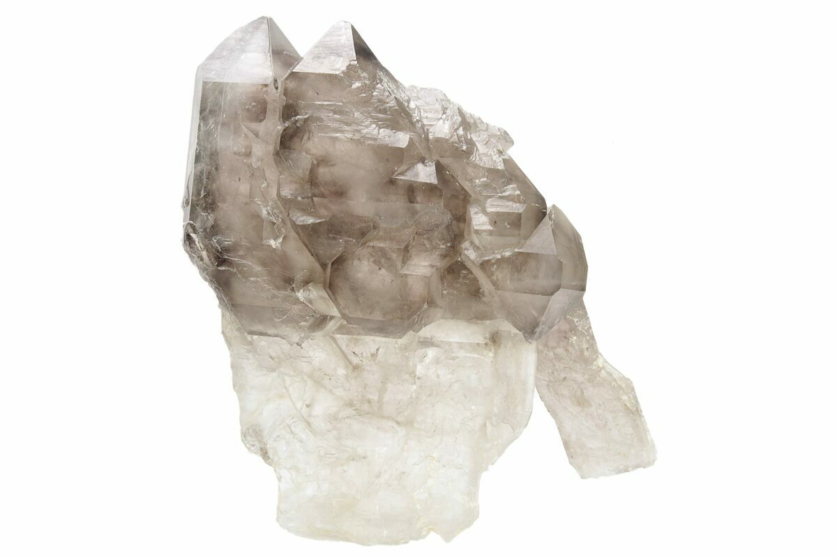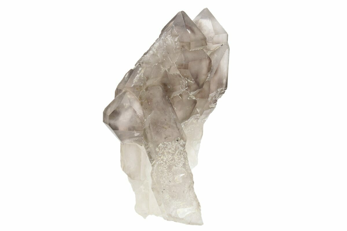 This is a natural, tabular smoky quartz crystal cluster from Minas Gerais, Brazil. This type of smoky quartz is commonly marketed as "smoky elestial quartz", or in some cases "jacaré" (Portuguese word for alligator) quartz for some specimens' resemblance to alligator skin.