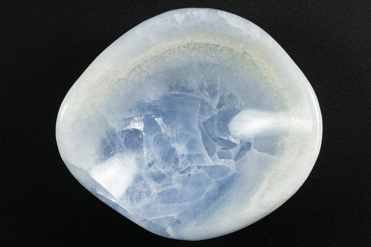 Its gentle blue coloration comes from trace amounts of mineral inclusions—most notably microscopic particles of copper, along with subtle variations in crystal structure and the presence of minute organic matter trapped during formation. These impurities scatter light in a way that creates the stone’s characteristic soft, icy hues. The result is a highly attractive material with a calming presence and an unmistakably Madagascan aesthetic.