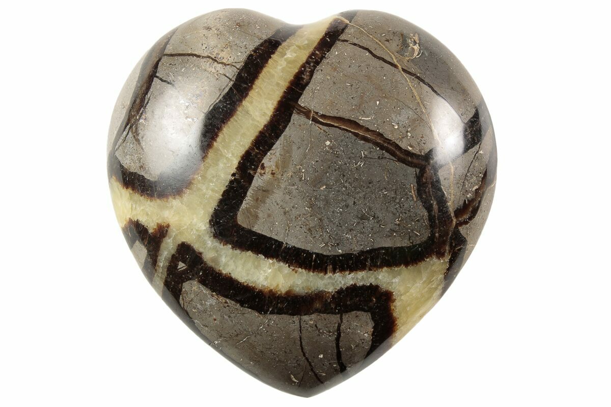This is a gorgeous septarian nodule that has been hand carved/polished into the shape of a heart. The septarian comes from the Betsiboka Region of Madagascar and was deposited during the Jurassic period.