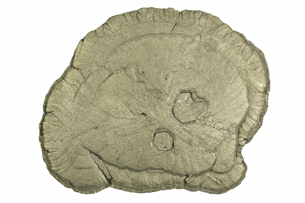 Pyrite suns or pyrite dollars are an unusual pyrite formation: striations radiate out from the center like rays of the sun. They are found in narrow, compacted seams of slate interbedded in the 300 million-year-old coal deposits near Sparta, Illinois. They are recovered as a byproduct of local coal mining operations, but are increasingly difficult to source as the coal mines in Illinois shut down one by one.