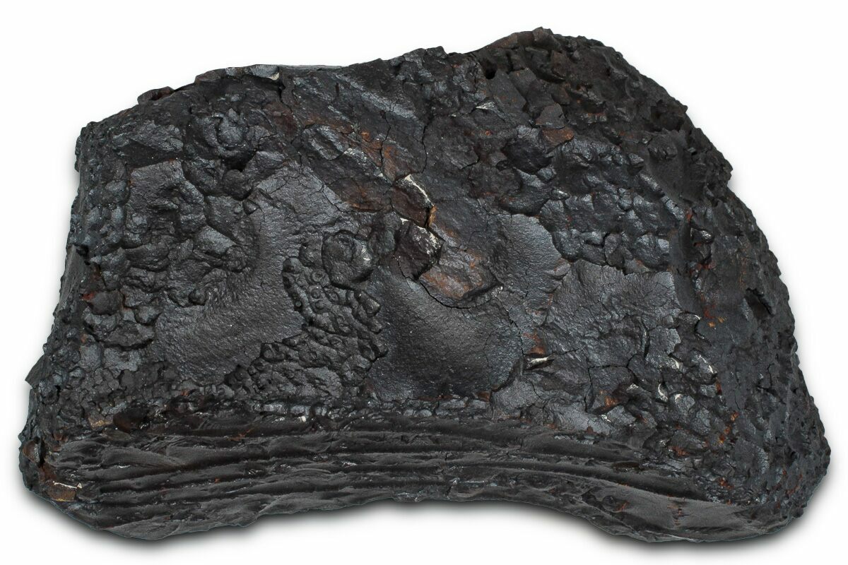 Dragon scale stone is the trade name of this type of iron nodule found in the Hell Creek Formation of North Dakota. They are found alongside dinosaur bones throughout the Hell Creek deposits, often lying next to dinosaur remains. Despite their name, these stones have nothing to do with dragons aside from their unique polygonal patterning, reminiscent of dragon scales. Their composition is primarily iron oxide with a siderite core and manganese/iron oxides that give them their dark red-brown patina.