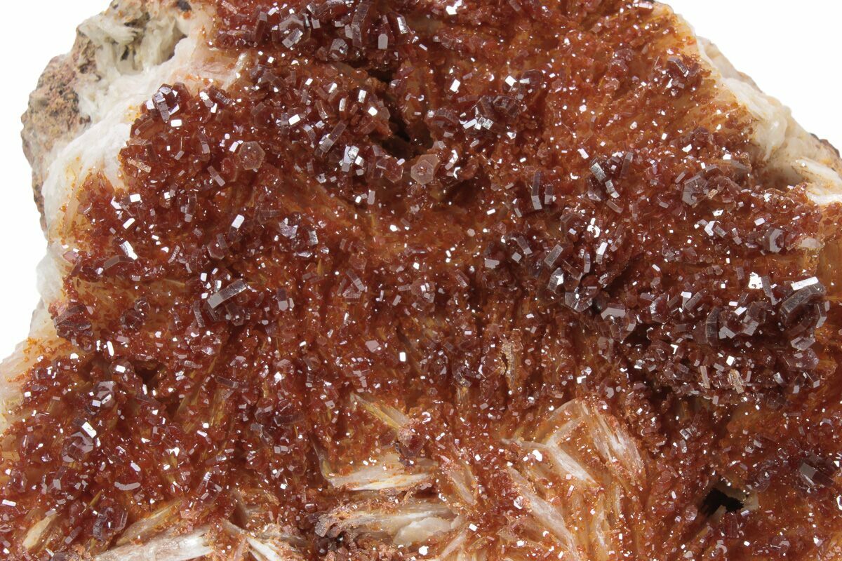 3.7" Glittering, Ruby Red Vanadinite Crystals on Barite - Morocco