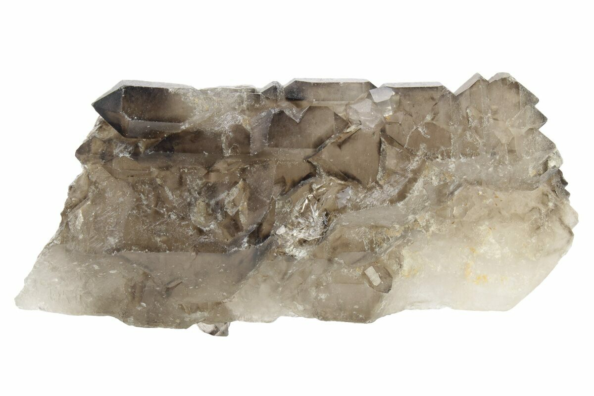 This is a natural smoky quartz crystal cluster from Minas Gerais, Brazil. This type of smoky quartz is commonly marketed as "smoky elestial quartz", or in some cases "jacaré" (Portuguese word for alligator) quartz for some specimens' resemblance to alligator skin. It features a gorgeous glassy luster and a geometric, stepped series of plateaus creating a stunning display piece.