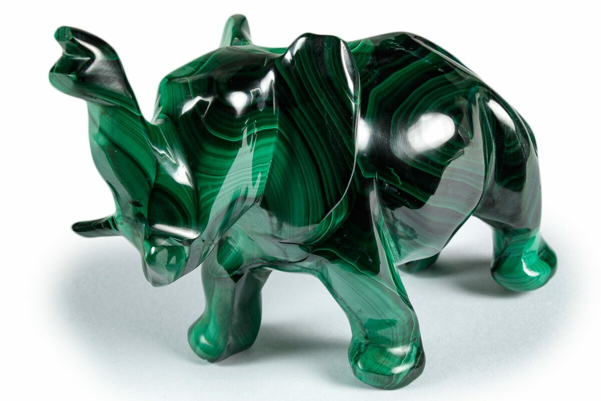 3.7" Polished Banded Malachite Elephant Carving - DR Congo