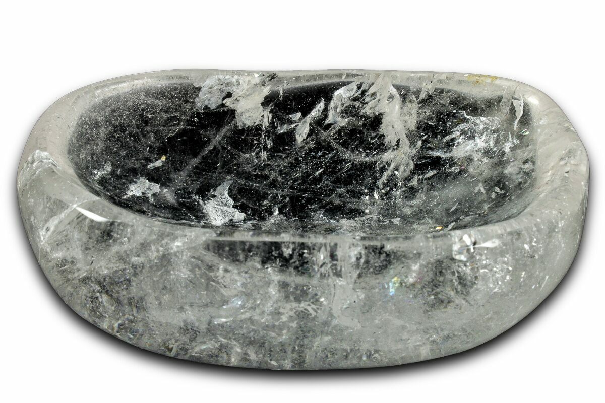 This is a 3.7" wide, polished quartz bowl/dish from Madagascar. The specimen has been shaped into a small dish after being cut from a bigger chunk of quartz. This specimen makes an excellent display and serves many practical purposes.