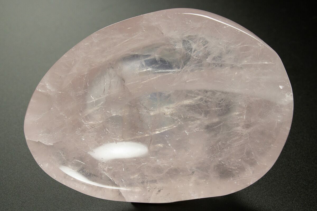 Rose quartz is a type of quartz that exhibits a pale pink to rose-red hue. It is most commonly found in large masses and very rarely forms individual crystals, unlike many other varieties of quartz. While rose quartz can be found many places throughout the world, the best commercially available material comes from Madagascar and Brazil. It is frequently polished and used for decorative purposes.