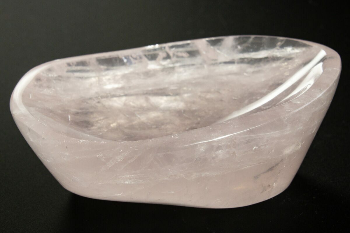 This is a gorgeous, 3.7" wide, polished rose quartz bowl/dish. It has been hand carved/polished out of a solid piece of rose quartz crystal.