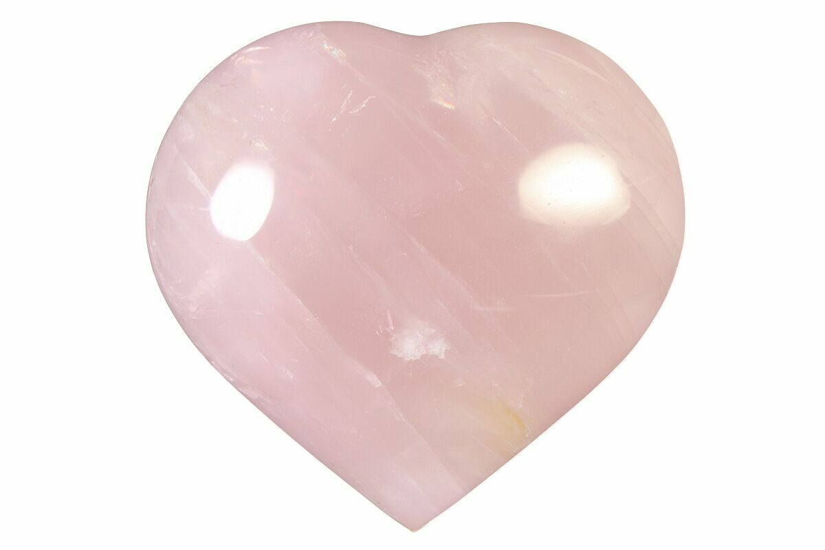 This is a 3.7" wide, polished rose quartz heart. The rose quartz was mined and hand shaped/polished in Madagascar.