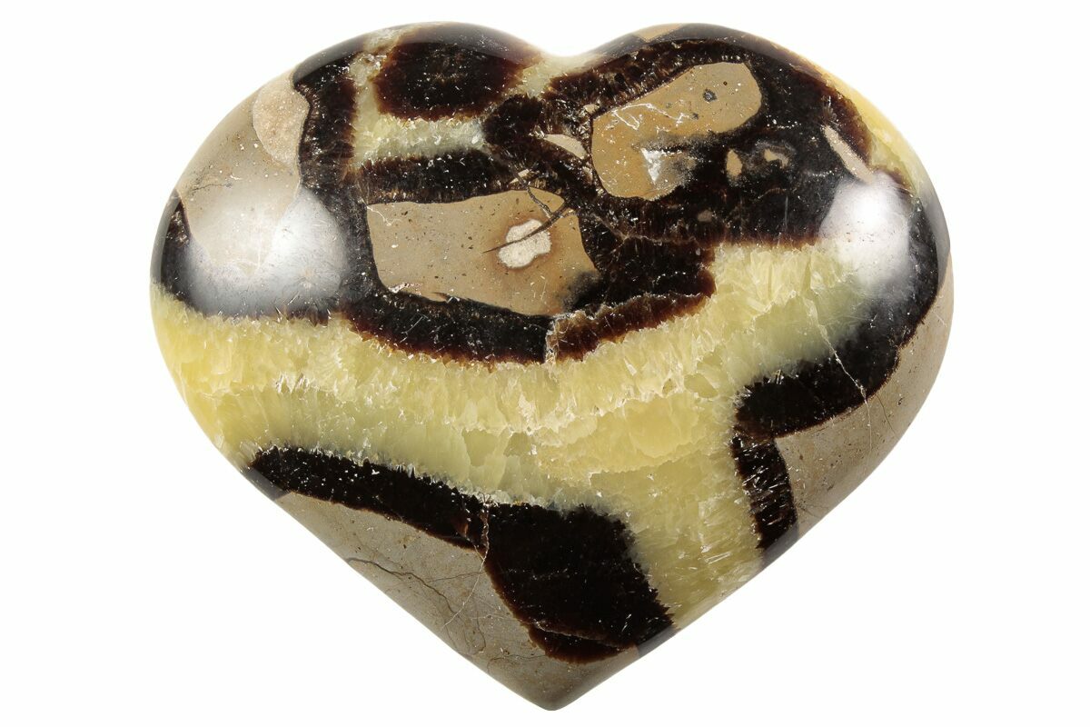 This is a gorgeous septarian nodule that has been hand carved/polished into the shape of a heart. The septarian comes from the Betsiboka Region of Madagascar and was deposited during the Jurassic period.