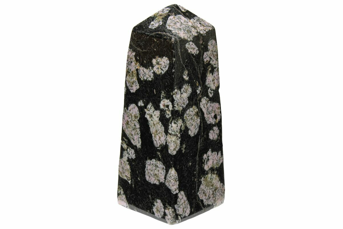This is a 3.7" tall polished obelisk (tower) made from Pakistan snowflake stone