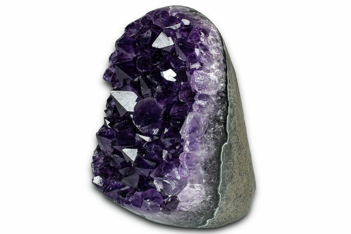 This is a 3.75" grape-jelly purple amethyst geode section from the famous amethyst mines in Artigas, Uruguay. The base has been cut flat so that it stands up nicely on a flat surface.