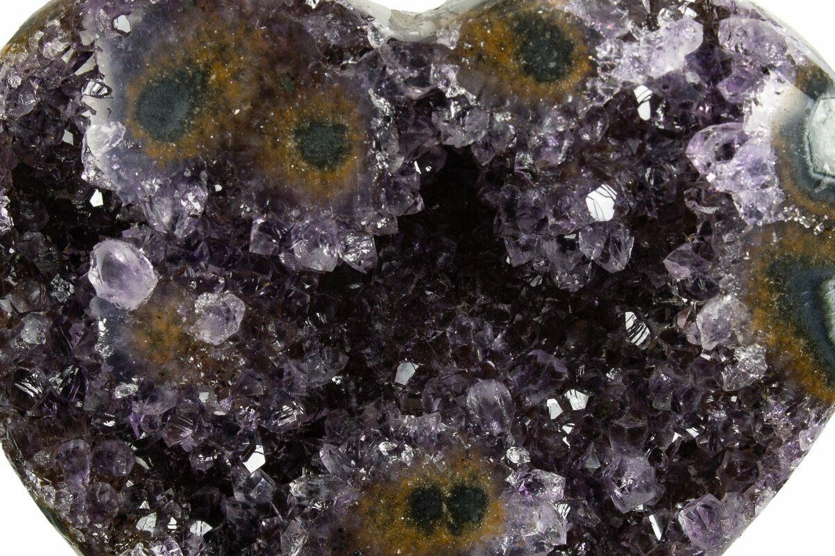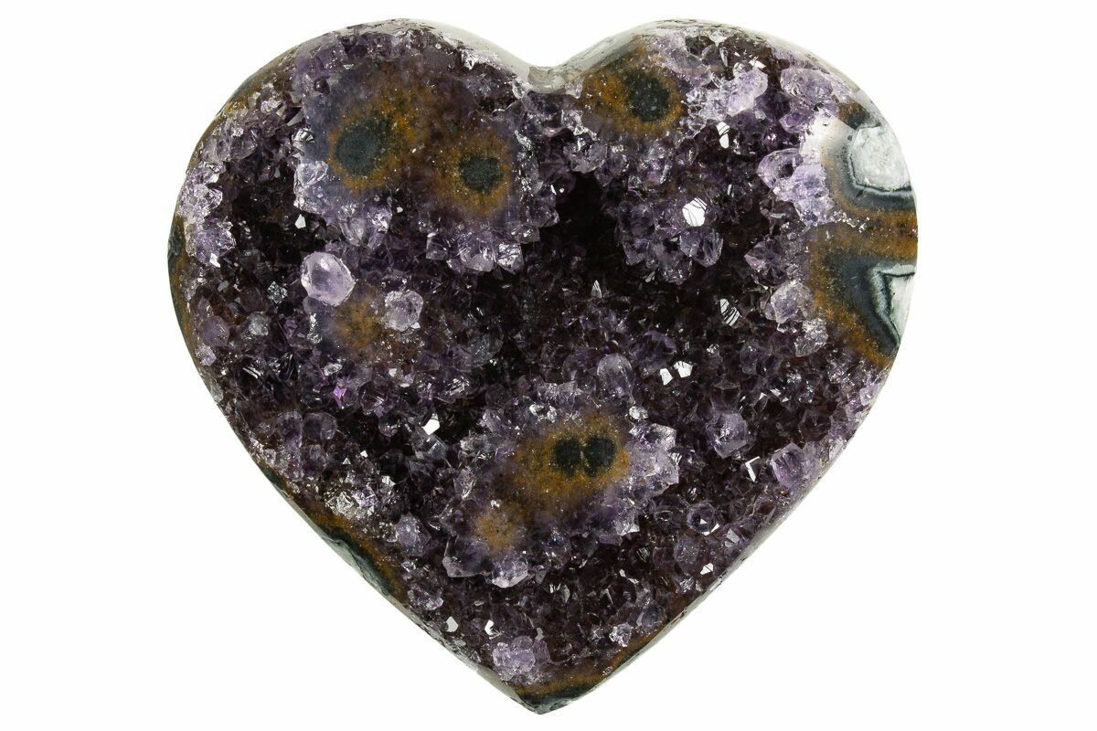 This is a beautiful dark purple amethyst heart from the famous amethyst mines near Artigas, Uruguay. It was mined from within a pocket in the hard basalt. The "rind" of this heart has been polished to reveal the mineral beauty within.
