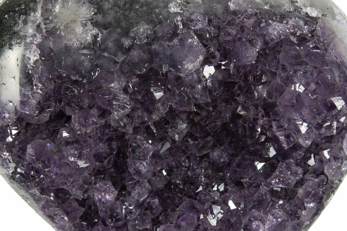 This is a beautiful dark purple amethyst heart from the famous amethyst mines near Artigas, Uruguay. It was mined from within a pocket in the hard basalt. The "rind" of this heart has been polished to reveal the mineral beauty within.