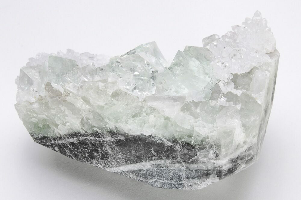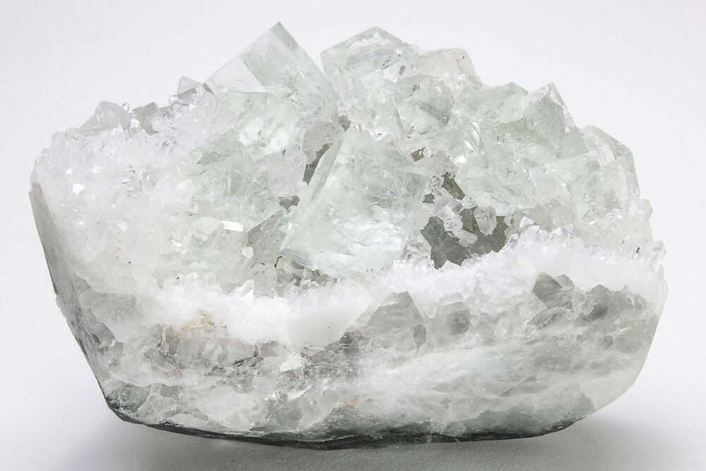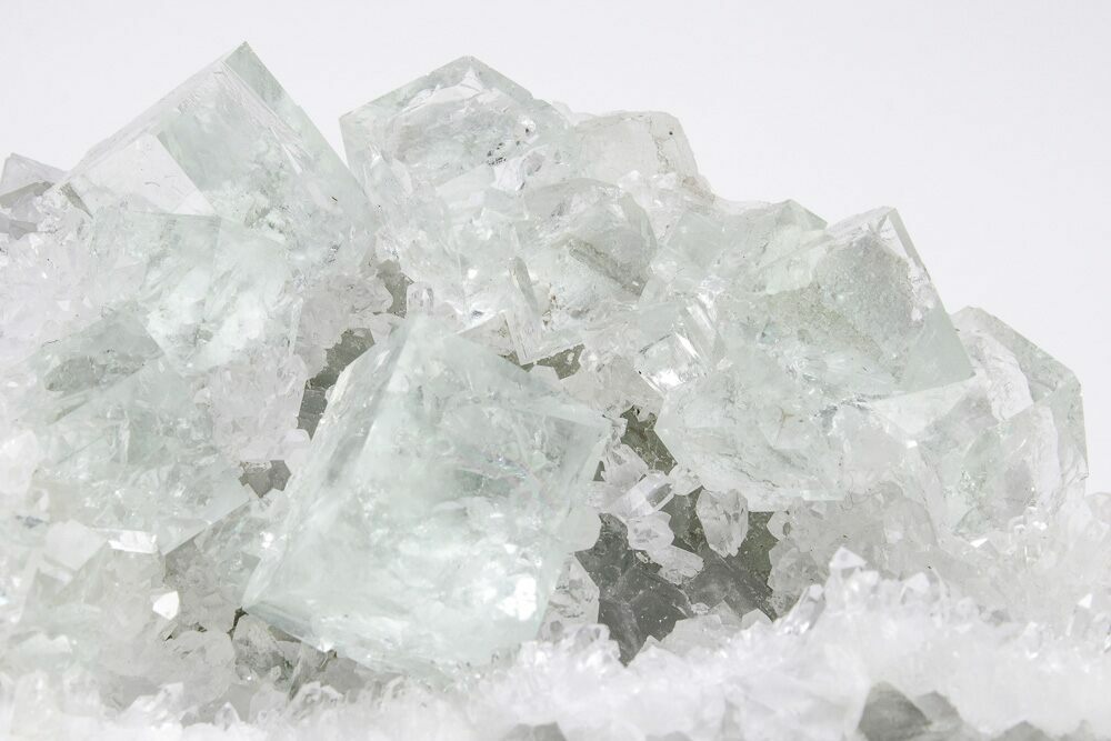 3.8" Glass-Clear, Green Cubic Fluorite Crystals on Quartz - China