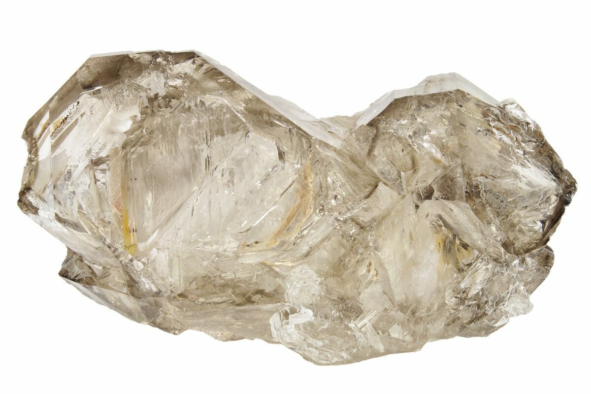 This is a natural smoky quartz crystal cluster from Minas Gerais, Brazil. This type of smoky quartz is commonly marketed as "smoky elestial quartz", or in some cases "jacaré" (Portuguese word for alligator) quartz for some specimens' resemblance to alligator skin. It features a gorgeous glassy luster and stunning transparency.