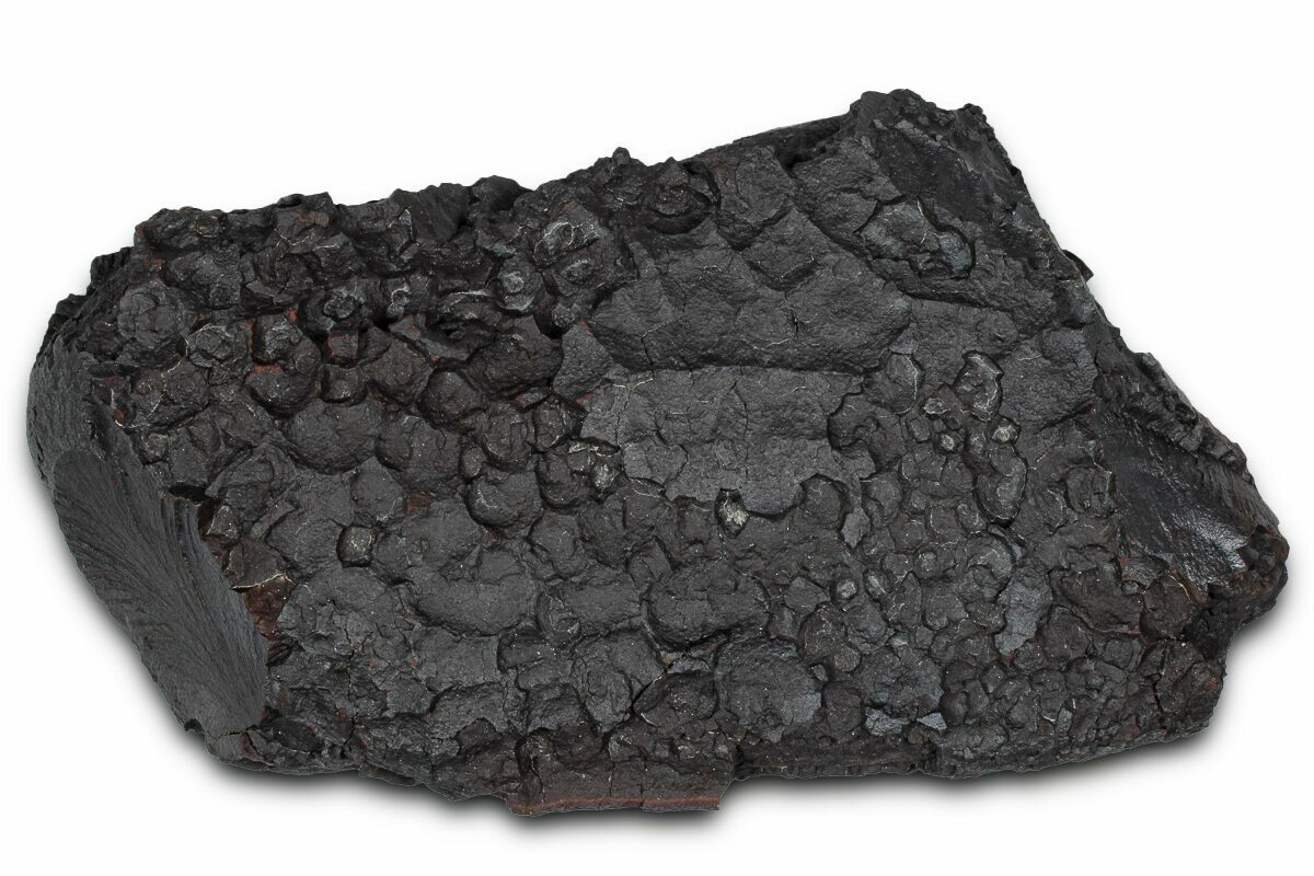 Dragon scale stone is the trade name of this type of iron nodule found in the Hell Creek Formation of North Dakota. They are found alongside dinosaur bones throughout the Hell Creek deposits, often lying next to dinosaur remains. Despite their name, these stones have nothing to do with dragons aside from their unique polygonal patterning, reminiscent of dragon scales. Their composition is primarily iron oxide with a siderite core and manganese/iron oxides that give them their dark red-brown patina.