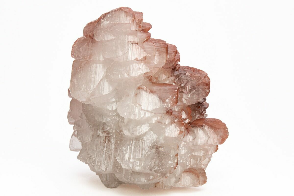 Calcite crystals are a form of calcium carbonate (CaCO₃) known for their diverse shapes, transparency, and vibrant range of colors. They typically form in rhombohedral, scalenohedral, or prismatic shapes, often with well-defined, sharp edges and glossy surfaces. Calcite crystals are often translucent or transparent, sometimes displaying a double refraction effect where objects viewed through the crystal appear doubled. They can appear in various colors—white, clear, yellow, pink, blue, green, and orange—depending on impurities or trace minerals.