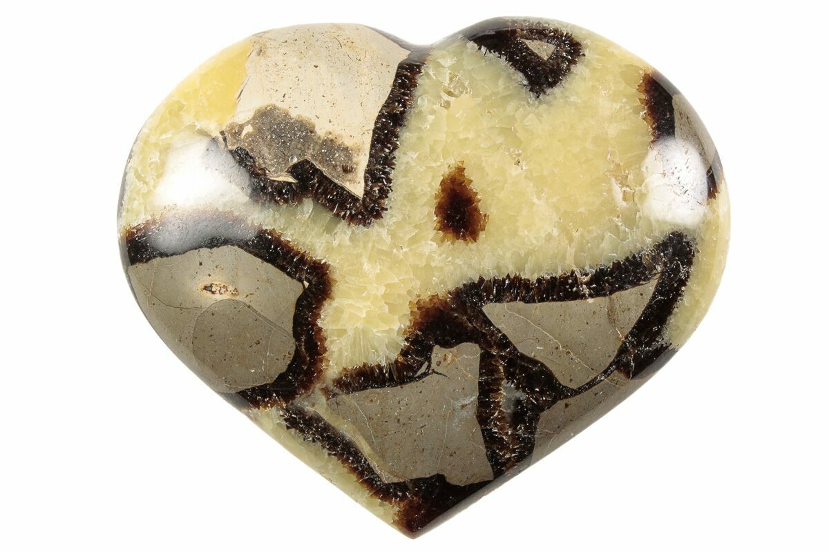 This is a gorgeous septarian nodule that has been hand carved/polished into the shape of a heart. The septarian comes from the Betsiboka Region of Madagascar and was deposited during the Jurassic period.