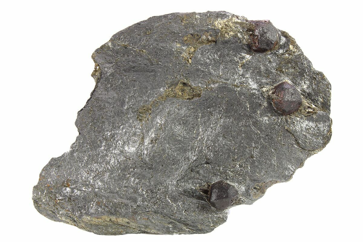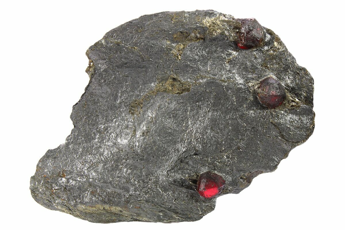 3.9" Plate of Three Red Embers Garnets in Graphite - Massachusetts