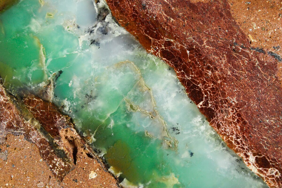 Chrysoprase is cryptocrystalline, which means that it is composed of crystals so fine that they cannot be seen as distinct particles under normal magnification. This sets it apart from rock crystal, amethyst, citrine, and the other varieties of crystalline quartz. Other members of the cryptocrystalline silica family include agate, carnelian, and onyx. Unlike many non-transparent silica minerals, it is the color of chrysoprase, rather than any pattern of markings, that makes it desirable. The word chrysoprase comes from the Greek χρυσός (chrysos), meaning 'gold', and πράσινον (prasinon), meaning 'green'.