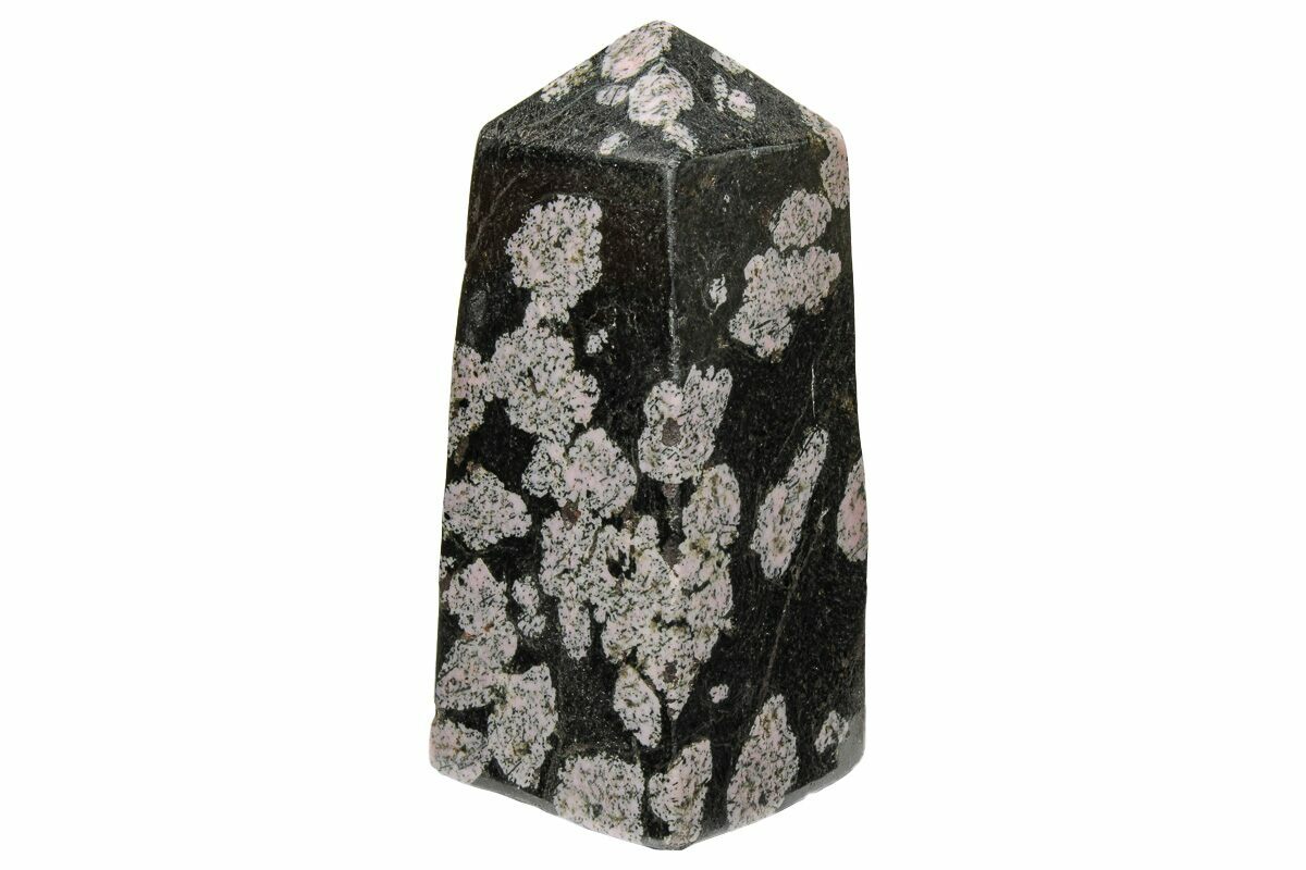 This is a 3.9" tall polished obelisk (tower) made from Pakistan snowflake stone