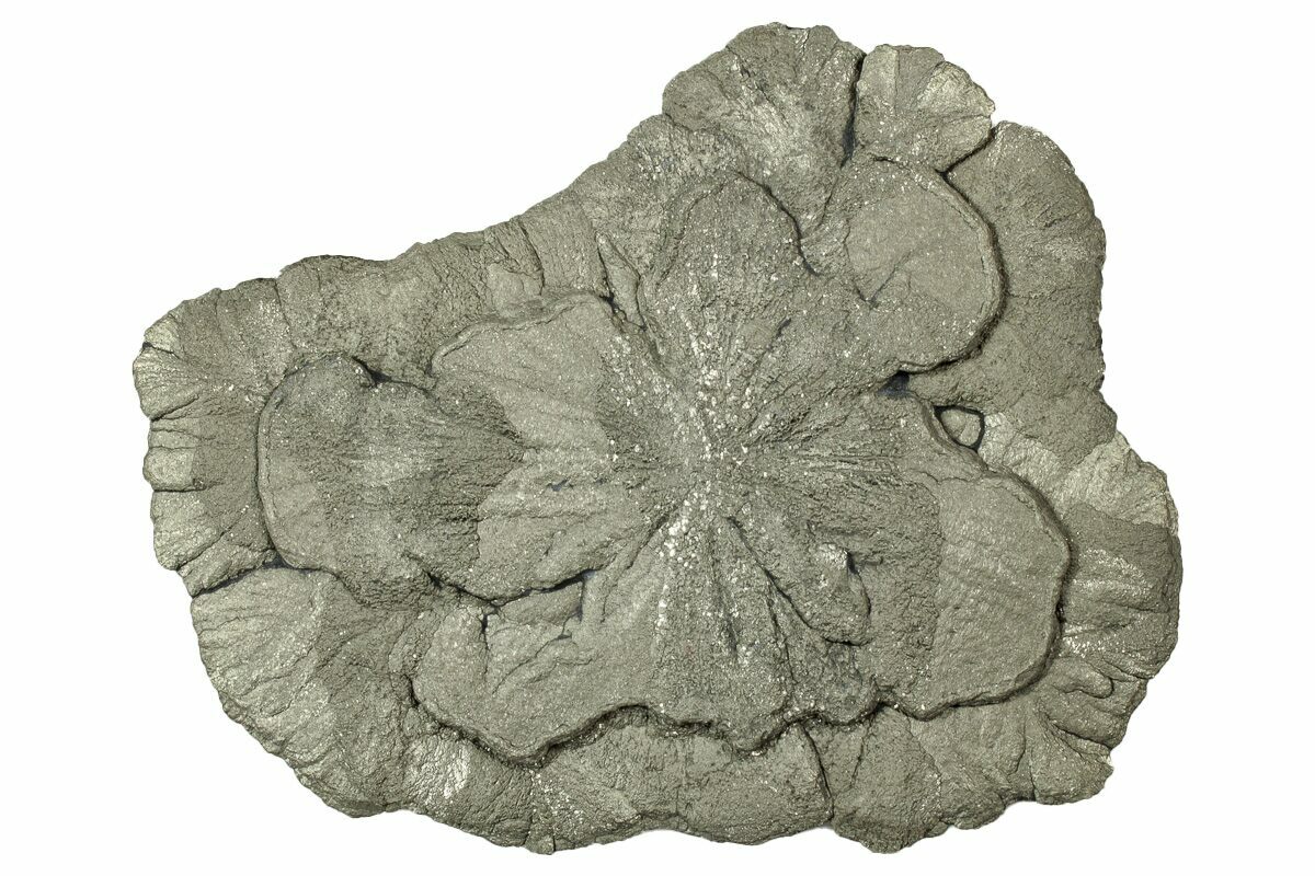 Pyrite suns or pyrite dollars are an unusual pyrite formation: striations radiate out from the center like rays of the sun. They are found in narrow, compacted seams of slate interbedded in the 300 million-year-old coal deposits near Sparta, Illinois. They are recovered as a byproduct of local coal mining operations, but are increasingly difficult to source as the coal mines in Illinois shut down one by one.