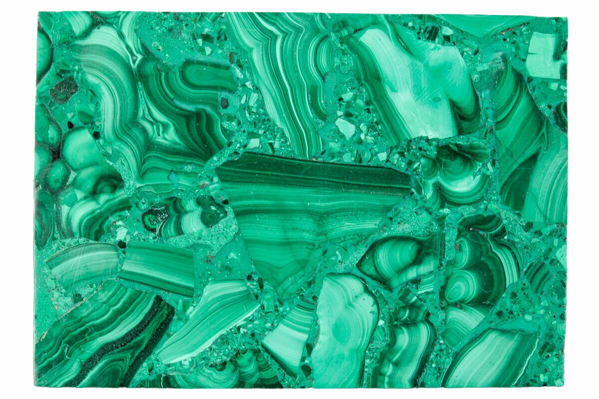 Malachite results from the weathering of other copper ores, and is very often found associated with other copper-based minerals such as azurite and chrysocolla. It can be found in copper deposits around the world, but the Democratic Republic of the Congo is the primary source for polished malachite and mineral specimens.
