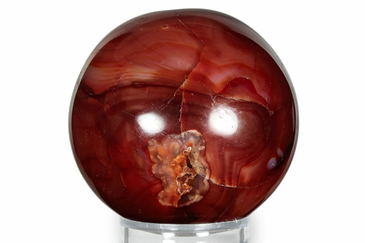 This is a richly-colored polished sphere of carnelian agate. The carnelian is mined in Madagascar and has wonderful deep red and orange colors.