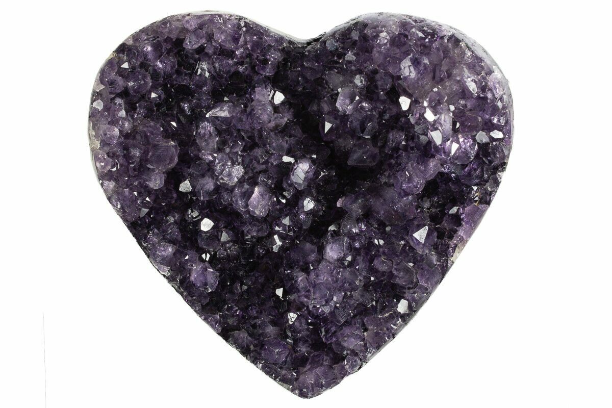 This is a beautiful dark purple amethyst heart from the famous amethyst mines near Artigas, Uruguay. It was mined from within a pocket in the hard basalt. The "rind" of this heart has been polished to reveal the mineral beauty within.
