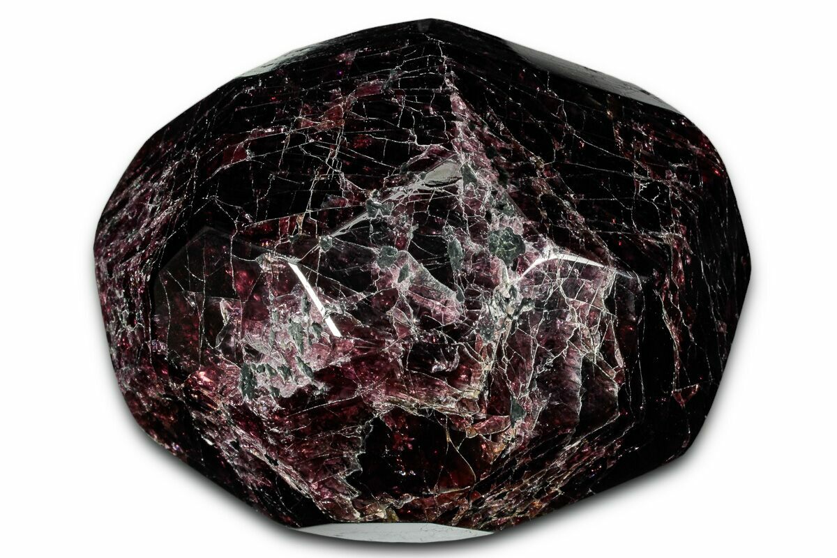 This is a 3" wide, faceted and polished Rhodolite garnet from Mozambique, Africa.