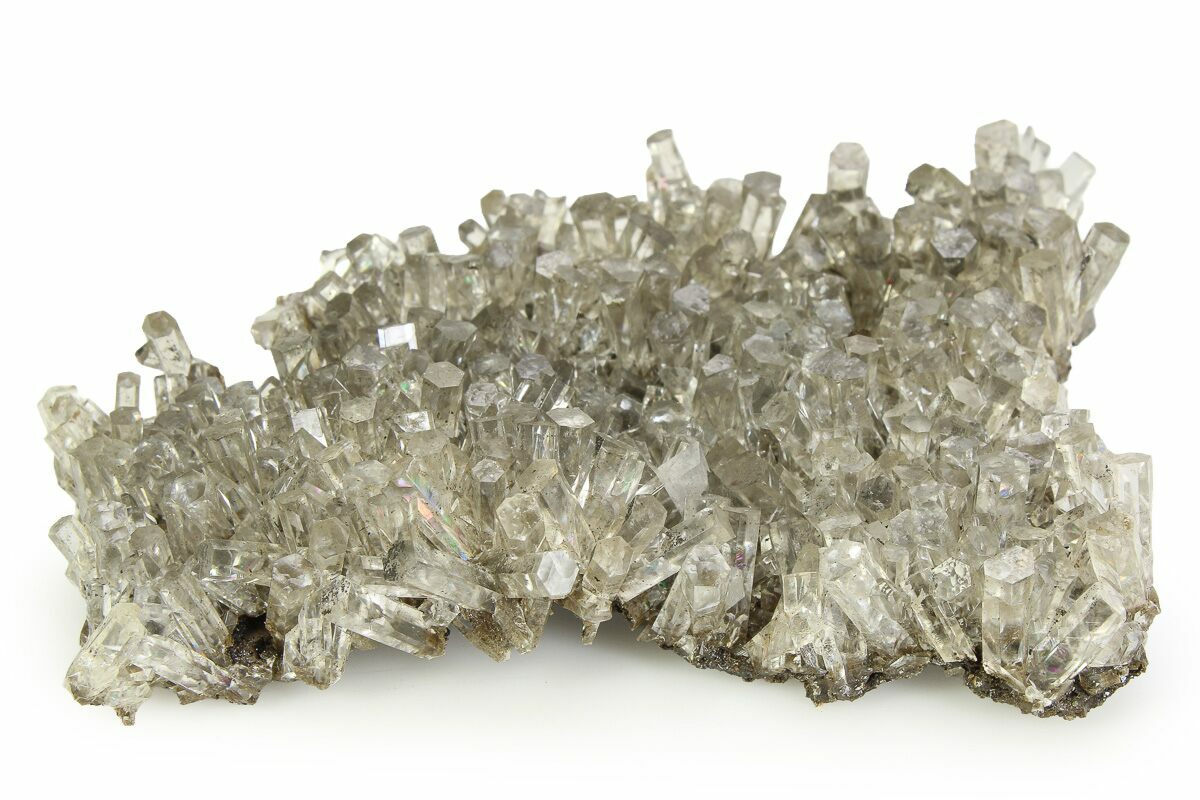 This is a stunning, 3" wide cluster of transparent, hexagonal, columnar calcite crystals collected from the Xia Yang Mine in Fujian, China. Comes with an acrylic display stand.