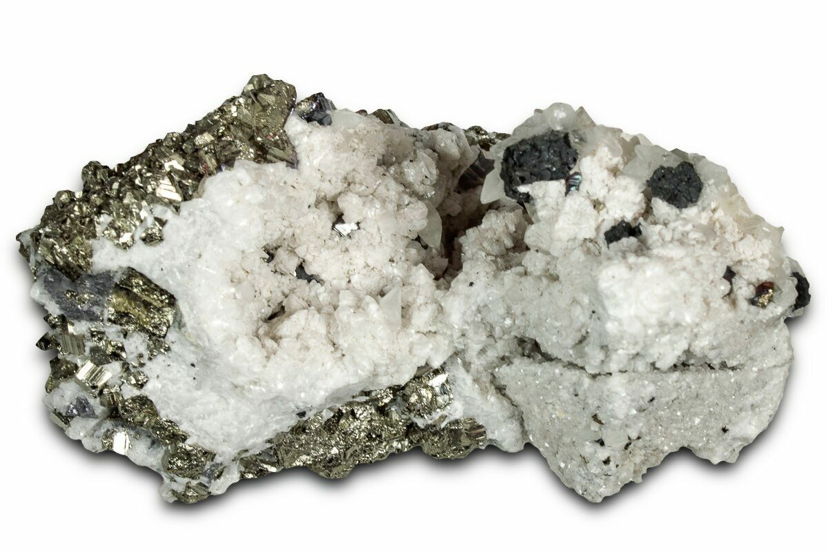 3" Lustrous Pyrite, Sphalerite & Calcite on Dolomite - Mexico