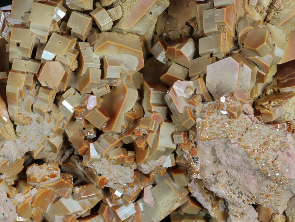 Vanadinite from Morocco is world-famous for producing some of the finest red crystal specimens on the planet. In the arid hills surrounding Mibladen and Taouz, vanadinite forms as vibrant clusters of hexagonal prisms, often with a deep crimson to orange-red color that seems to glow against the pale desert matrix. These crystals typically develop in dense groups, coating barite blades or covering weathered limestone with dazzling, glassy faces and sharp geometric symmetry. The dryness of the region and the slow oxidation of ancient lead deposits create the perfect geochemical environment for vanadinite to grow with exceptional clarity, luster, and intensity of color. Moroccan vanadinite is highly prized by collectors for its bold aesthetics, architectural crystal formations, and the consistent quality that has made these localities the global benchmark for the species.